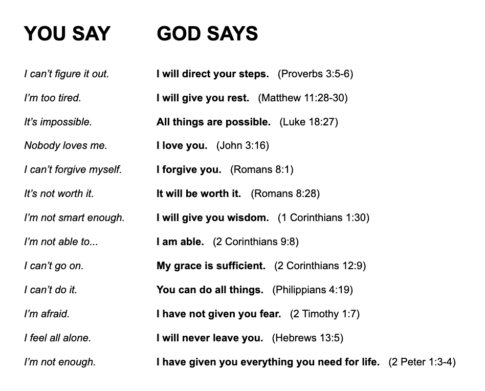 Spend time in Scripture, soaking in what God says about you. Write down verses that affirm your worth and keep them visible as reminders when doubt creeps in.