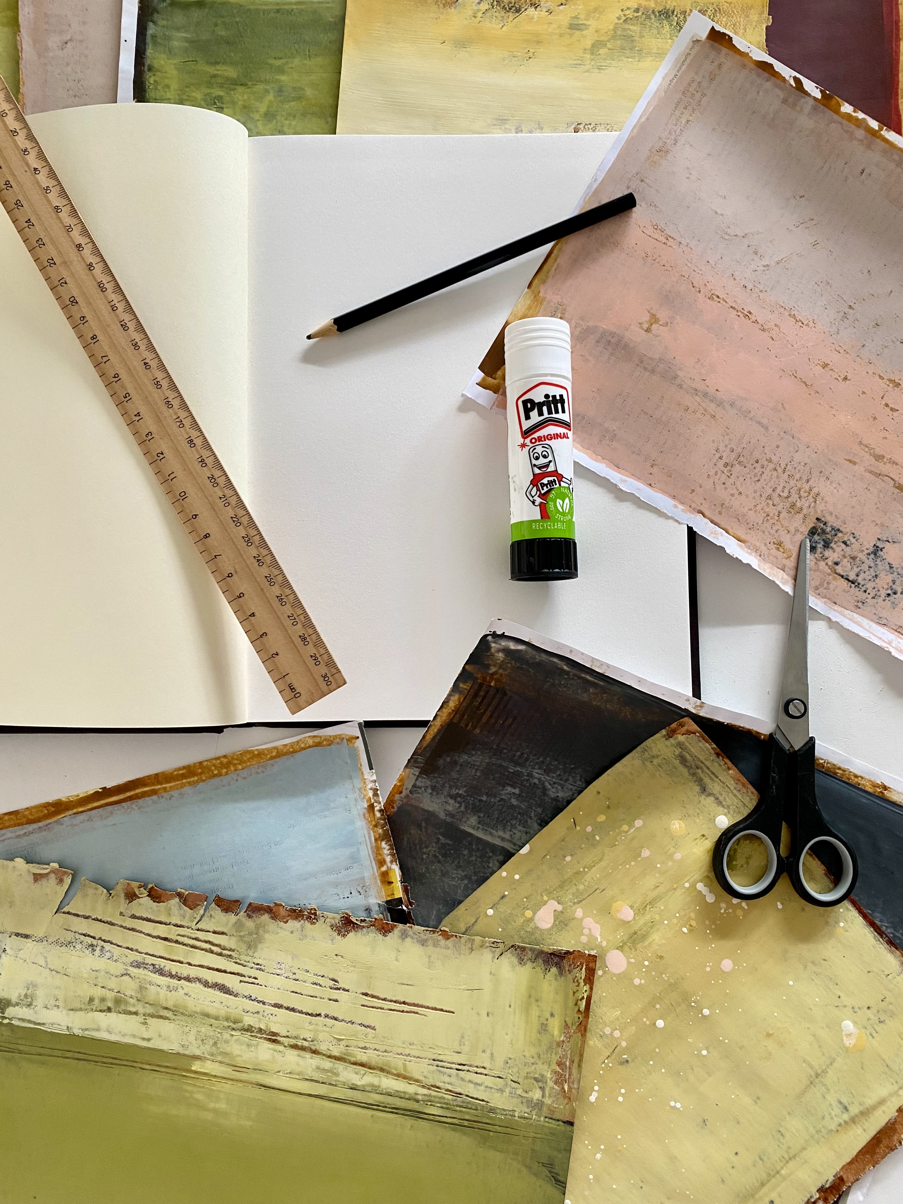 ✅ 22 printable collage papers in earthy, peaceful tones—layered textures, gentle light, and hints of nature